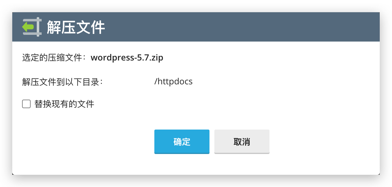 5.如果解压内容里需要覆盖,责勾选“替换现有的文件”,如果当前目录没有其他重名文件,可以不勾选